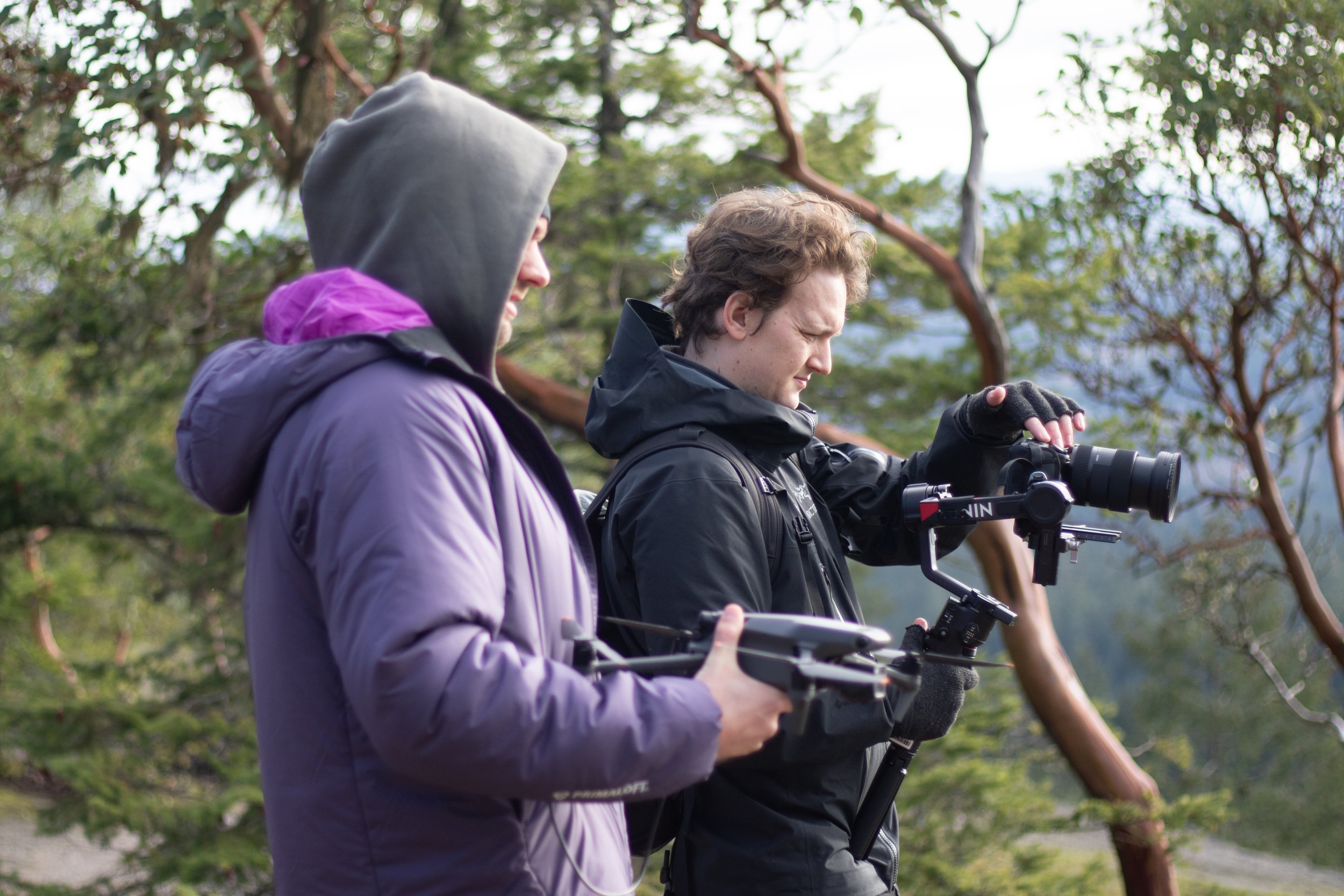 Over the past few days, I have had the pleasure of working with aspiring film makers, Natthan Davis and Miles Richardson, as we captured footage for an upcoming video project focused on my ‘Plein Air’ painting. We started the first day early as the rain was far from sight and the sun was beckoning us onward. We began close to home visiting some of my favourite little haunts, luckily for us Vancouver island is full of wild places and beautiful vistas both amazing to paint and to film. Like most things worth pursuing, it took some time to find a groove but after a few hours I was used to cameras hovering around me and drones buzzing overhead. It was a real fun experience. The experience challenged me to articulate my own process as the young film crew asked ‘why and how’ to understand what I was doing. The day ended with the failing light, and the boys spent another few hours formulating ideas and reviewing footage, as I prepared a good meal for all and enjoyed warm much deserved fire.